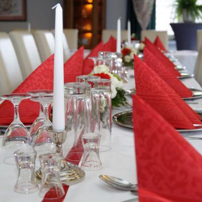 In unserem Festsaal findet Ihre Hochzeitsgesellschaft mit bis zu 140 Personen Platz.